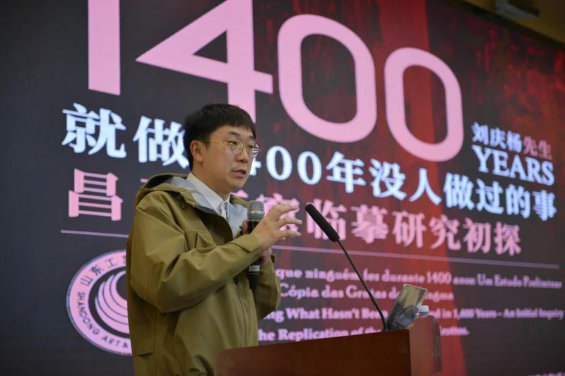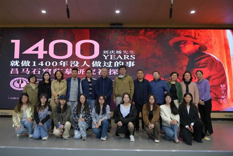2026年4月20日下午,山东工艺美术学院图书馆主办的《昌马石窟临摹研究初探》学术讲座在长清校区阶梯教室举行,讲座由中国艺文出版社副社长刘庆杨教授主讲,图书馆馆长李文华教授主持。此次讲座是山东工艺美术学院“全民阅读活动周”暨“世界读书日”系列活动的重要内容之一。